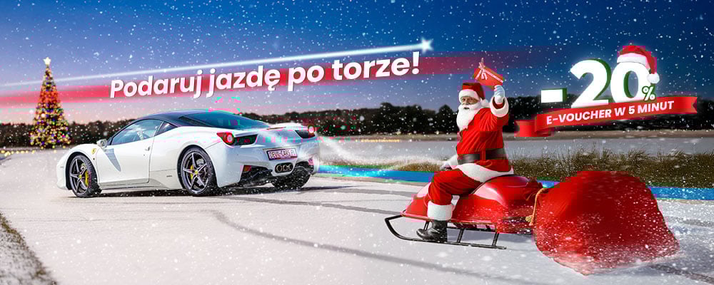 Szukasz prezentu, który robi wrażenie? Voucher na jazdę sportowym autem po torze to emocje, adrenalina i wspomnienia na długo. Teraz w świątecznej promocji: 20% taniej. 🎄